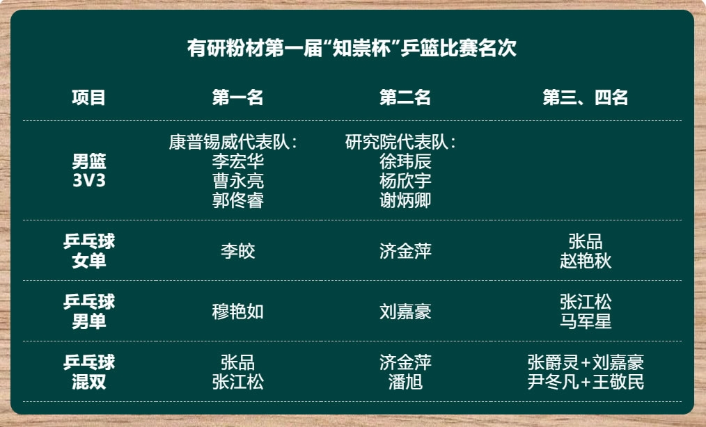 無論是兒時(shí)的課外教育,還是高中的課余活動,勤加練習(xí)都是取勝的關(guān)鍵。康普錫威代表隊(duì)在男籃3V3勝出,張品和張江松在乒乓球混雙中奪冠,這和他們在工作之余的鍛煉密不可分,康普錫威的籃球場和乒乓球案板為員工們提供了良好的體育鍛煉條件。