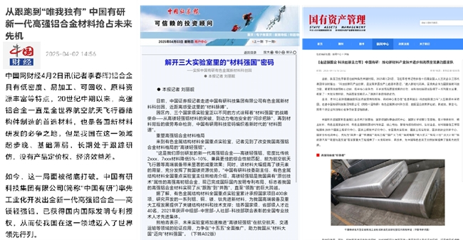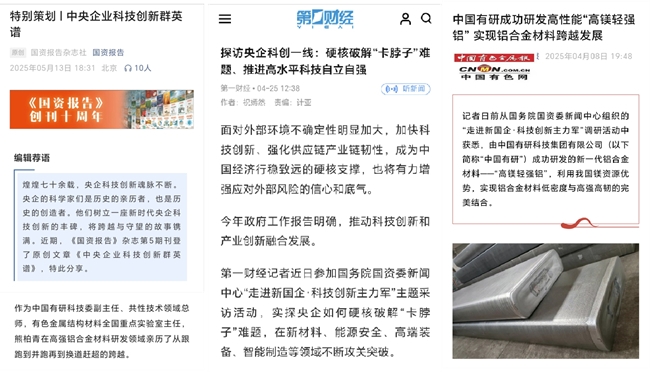 7月20日,《人民日報》頭版頭條刊發年中經濟觀察,報道了中國有研科技成果轉化最新進展。近期,新華社、《科技日報》、中國網財經、國資小新、《中國證券報》等多家主流媒體,持續關注報道中國有研科技創新的重要進展,其中,中國有研“高鎂輕強鋁”的誕生之路持續受到社會廣泛關注。