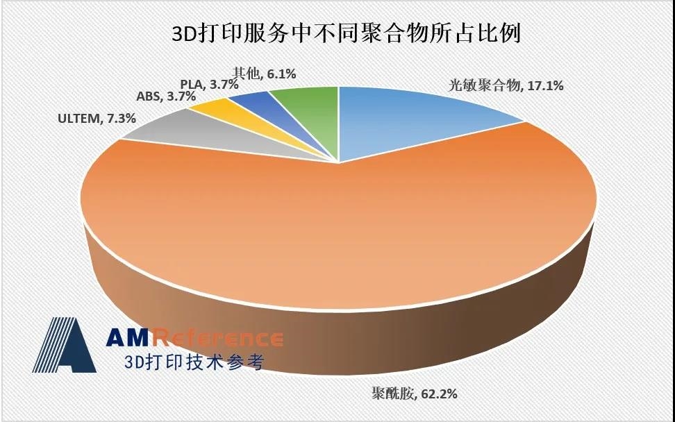 在使用的材料方面,光敏樹脂在長時間以來一直是最主要的3D打印材料,而在過去五年里,用于粉末床的聚合物粉末已經趕上光敏樹脂,并預計在未來幾年內取代其成為主要材料。根據調查,聚合物中的聚酰胺以及金屬中的鋁合金是用于服務最賺錢的3D打印材料。