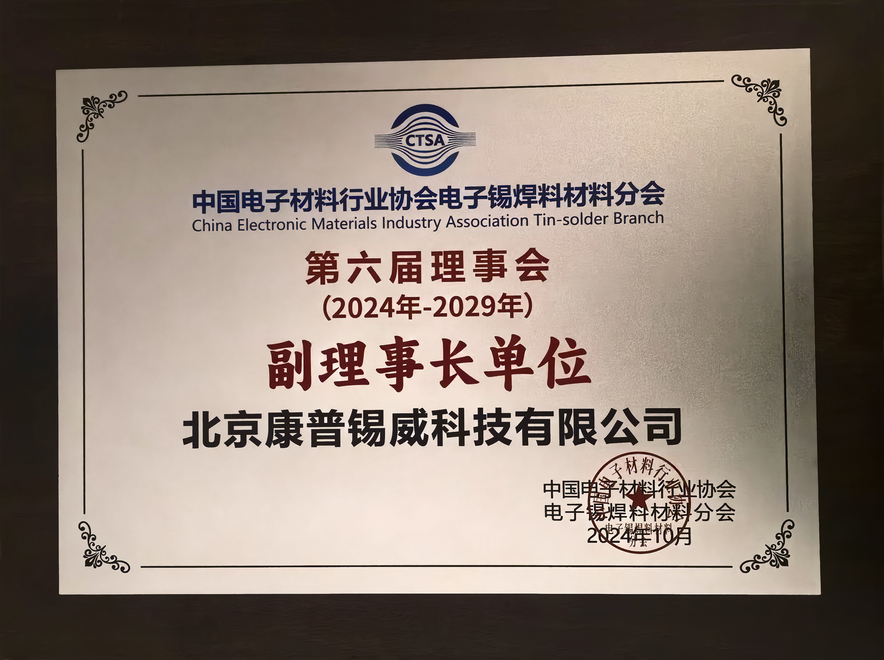 會議期間召開六屆一次會員代表大會進行理事會換屆,康普錫威當選為電子錫焊料材料分會的副理事長單位,這是康普錫威連續第四次當選為副理事長單位,康普錫威副總經理劉希學代表公司接受授牌。